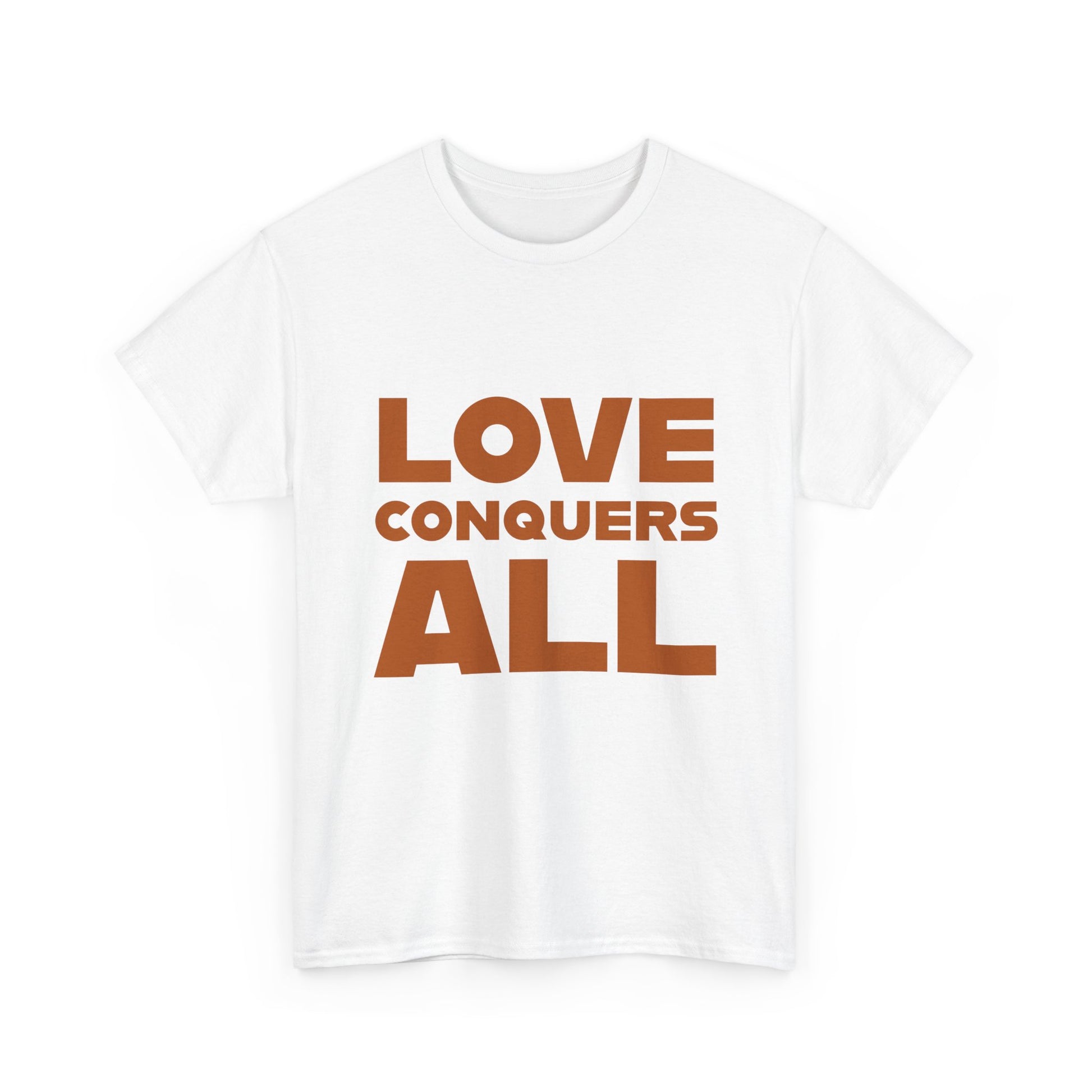 Love Conquers All T-Shirt — Bold Retro Typography Tee